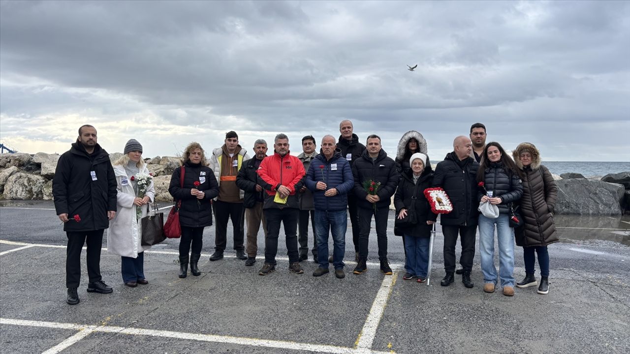 Törende, kazada ölenlerin yakınları denize karanfil bıraktı.