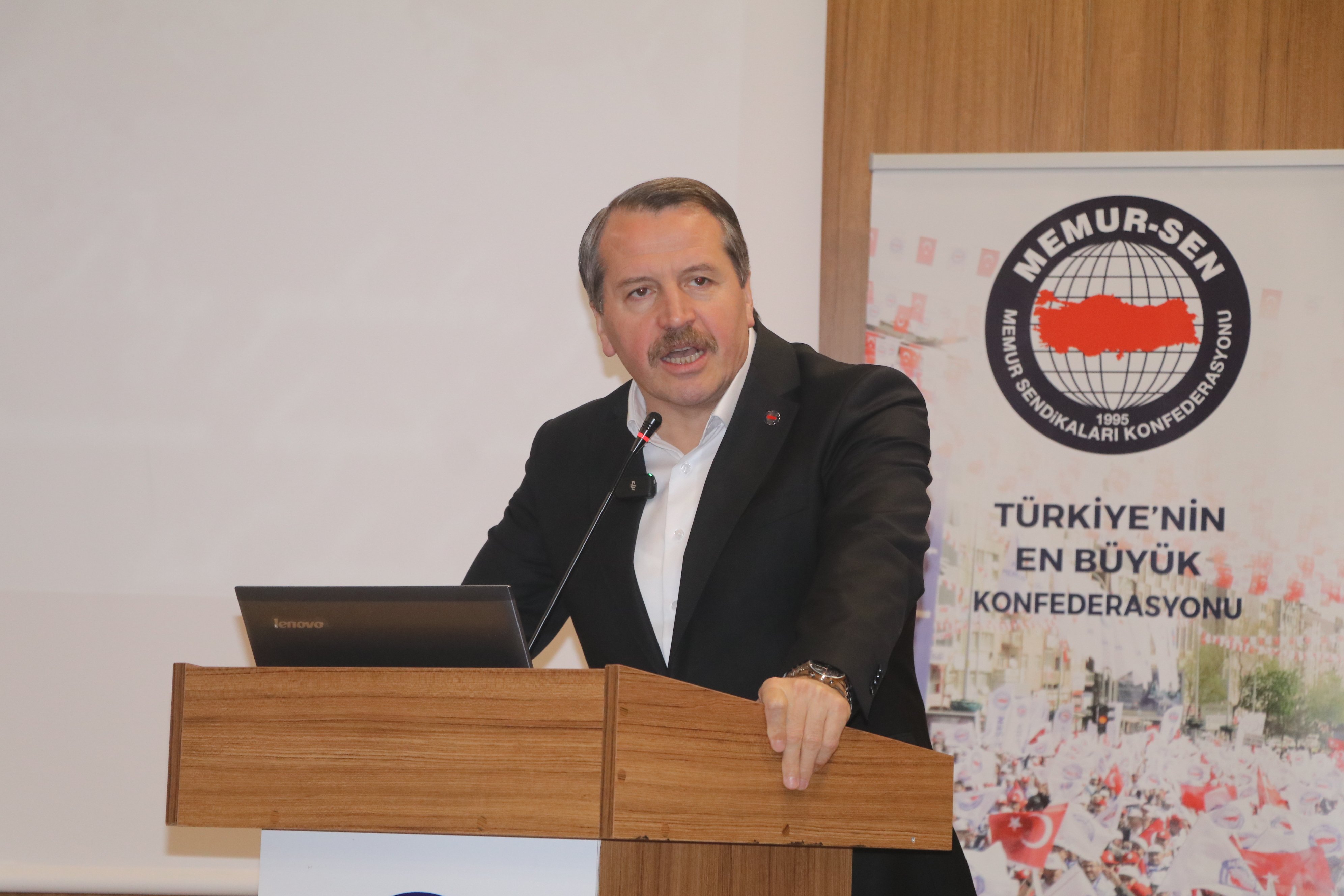 Eğitim-Bir-Sen ve Memur-Sen'in 35'inci yılına ilerleyen, Türkiye'de sendikal mücadeleyi temsil eden kıymetli bir örgütlenme olduğunu belirten Yalçın, 'Üyelerin ekonomik, sosyal, mali haklarını iyileştirmek, özlük ve özgürlük alanlarını genişletmek, ekonomik olarak refah sınırında ücret alabileceği zemine taşımak ana gayemizdir. Bunu yerine getirirken aynı zamanda ülkenin vesayet iradesinin, millet iradesi üzerinden kalkması, ülkenin demokrasisinin ham demokrasi değil, tam demokrasi olması, ülkenin korku tünelinden çıkarak teneffüs imkanı yakalayarak özgürleşmesi ve yeniden büyük Türkiye idealinin gerçekleşmesi konusunda bize düşen sorumluluklar var.' diye konuştu.