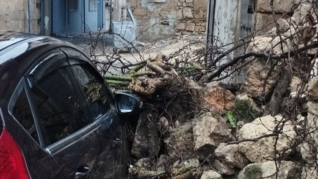 MERSİN (AA) - Mersin'in Tarsus ilçesindeki etkili olan yağış nedeniyle yıkılan evin duvarı, park halindeki otomobilde hasar oluşturdu.