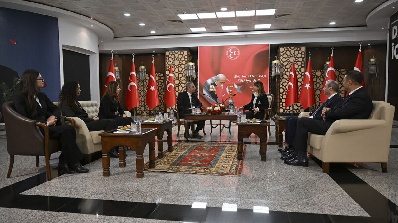 Genel Başkan Yardımcısı Serkan Özcan başkanlığındaki CHP heyetini, MHP Genel Başkan Yardımcısı Zühal Topcu, Siyaset ve Liderlik Okulu Koordinatörü MYK üyesi Turan Şahin, MYK üyesi Özgür Bayraktar'dan oluşan heyet ağırladı.
