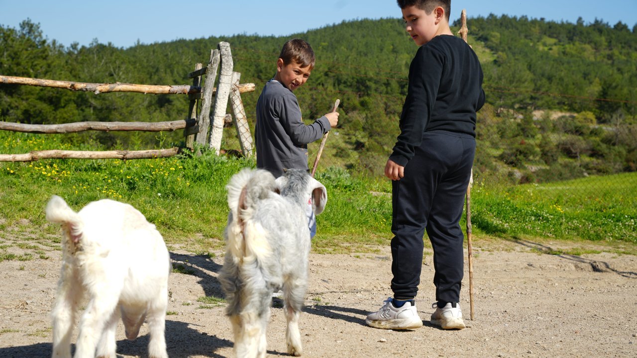 Harmancık köyünde yaşayan Eçialan İlkokulu 3. sınıf öğrencisi 9 yaşındaki Poyraz Özdemir ile aynı okuldan arkadaşı 4. sınıf öğrencisi 10 yaşındaki Efecan Sirkeli de 'Pamuk' ve 'Boncuk' adını verdikleri oğlaklarıyla yarışmaya hazırlanıyor.