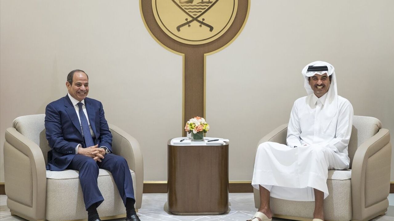 Katar resmi haber ajansı QNA'nın aktardığına göre, Katar Emiri Şeyh Temim bin Hamed Al Sani, Mısır Cumhurbaşkanı Sisi'yi Hamad Uluslararası Havalimanı'nda resmi törenle karşıladı.