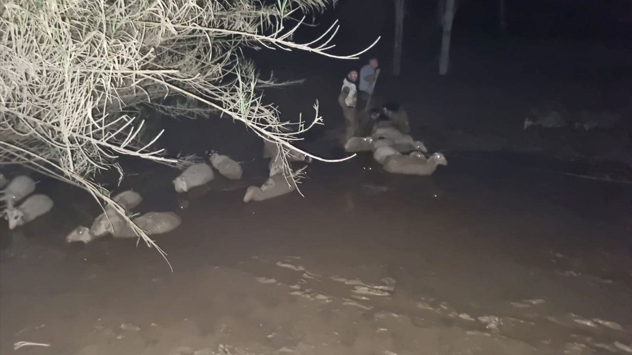 Bölgeye araçla ulaşımın olmaması nedeniyle güçlükle alana ulaşan ekipler, çamurda mahsur kalan 30 koyunu kurtardı, iki koyunun ise telef olduğu belirlendi.