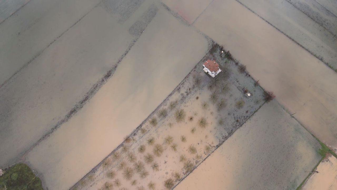 Dün akşam saatlerinden itibaren etkisini artıran sağanak nedeniyle sular altında kalan tarım arazileri dronla görüntülendi.