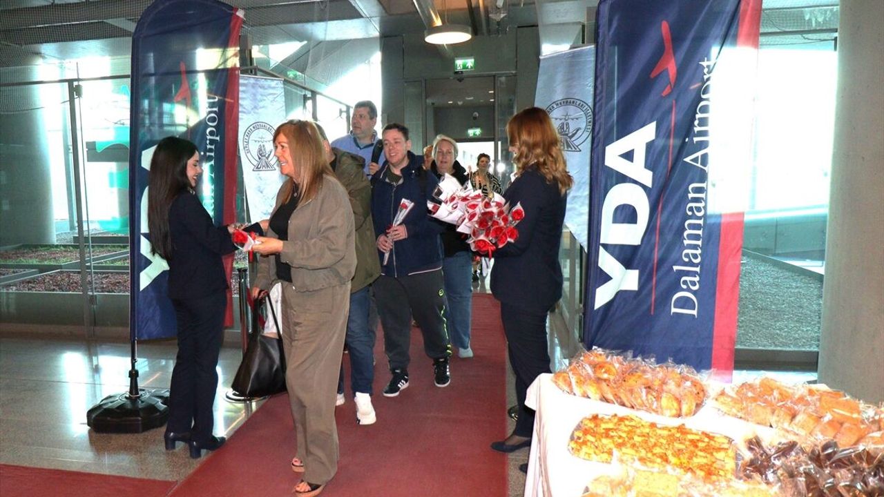 İngiltere'nin Manchester şehrinden YDA Dalaman Havalimanı'na inen kafile için karşılama töreni düzenlendi. Havalimanı yetkililerince çiçeklerle karşılanan kafiledeki 189 yolcuya hediyeler verildi.