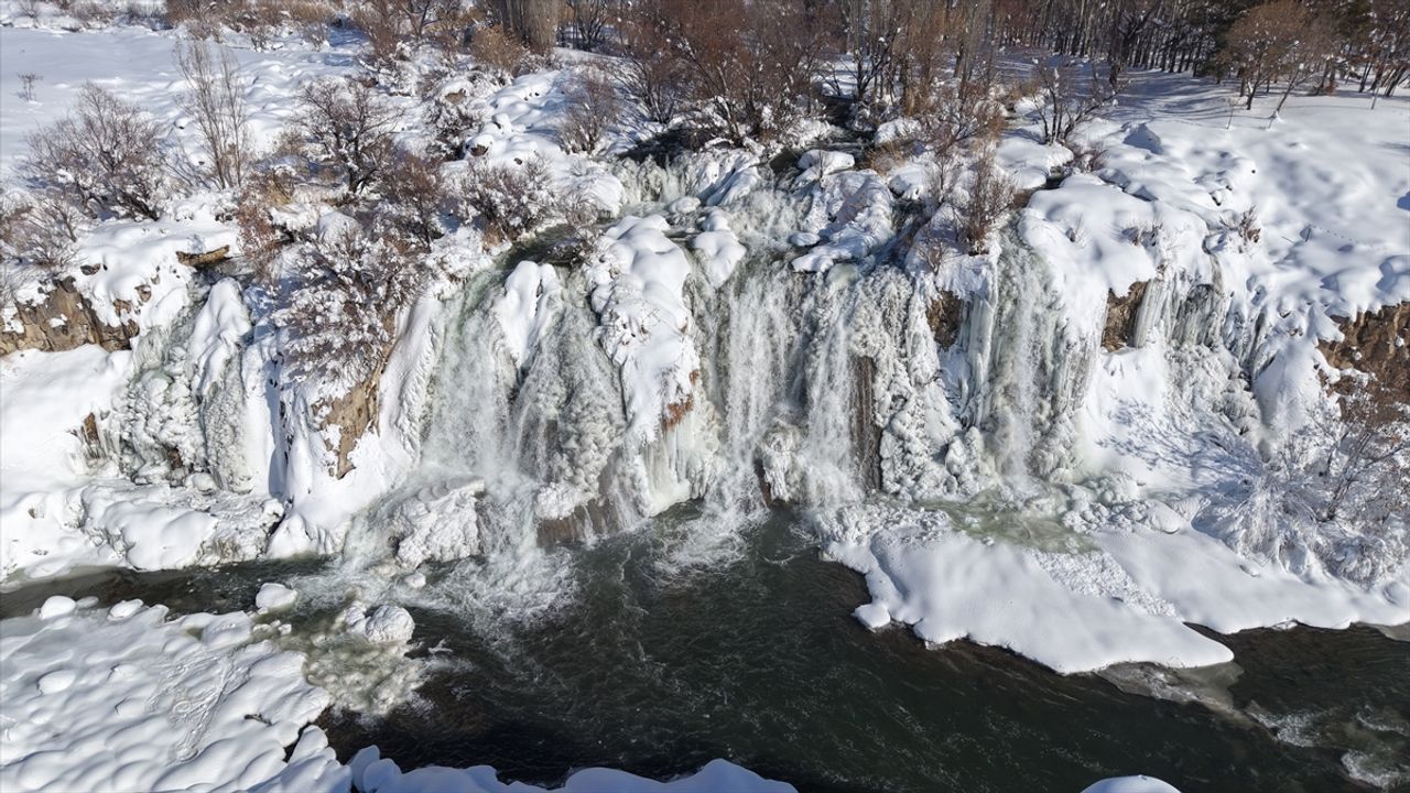 VAN (AA) - Van'ın Muradiye ilçesinde en çok ziyaret edilen yerlerden Muradiye Şelalesi, soğuk havanın etkisiyle kısmen dondu.