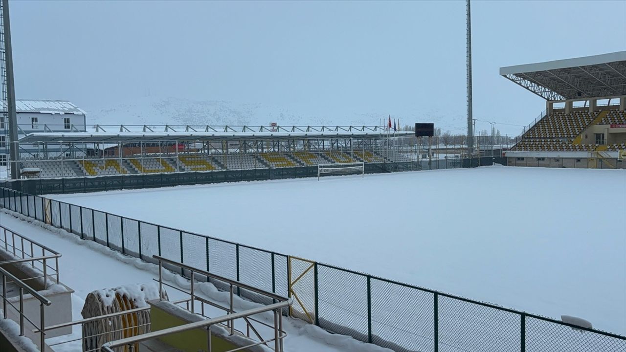 Kentte iki gündür etkili olan kar yağışının ardından Muş Şehir Stadı'nın zemininde kar birikintileri oluştu.