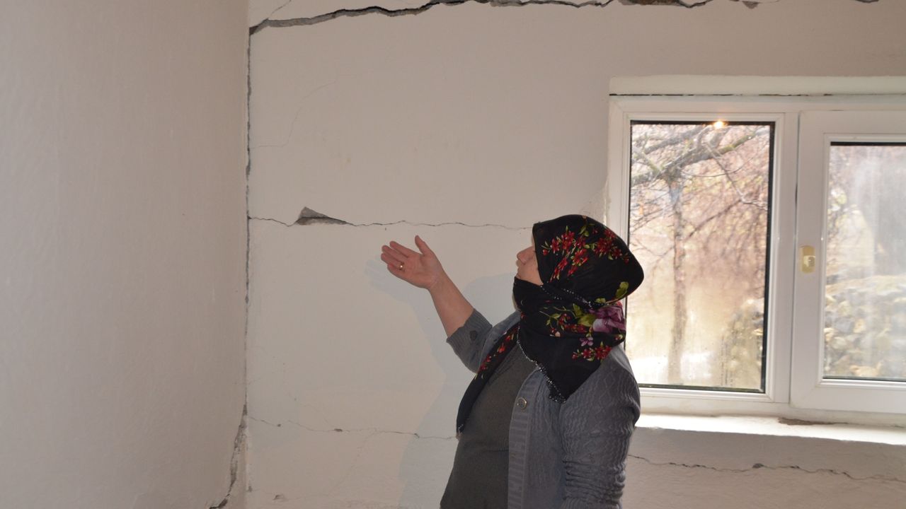 Bir evin duvarlarında çatlakların oluşması üzerine köy sakinleri durumu AFAD görevlerine iletti.