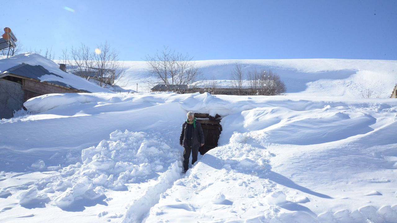 Son yağışların ardından kar kalınlığının yer yer 2 metreyi bulduğu, tek katlı ev ve ahırların karla kaplandığı köyde, önceki yıllara göre daha ağır geçen kış koşulları yöre sakinlerini zorluyor.