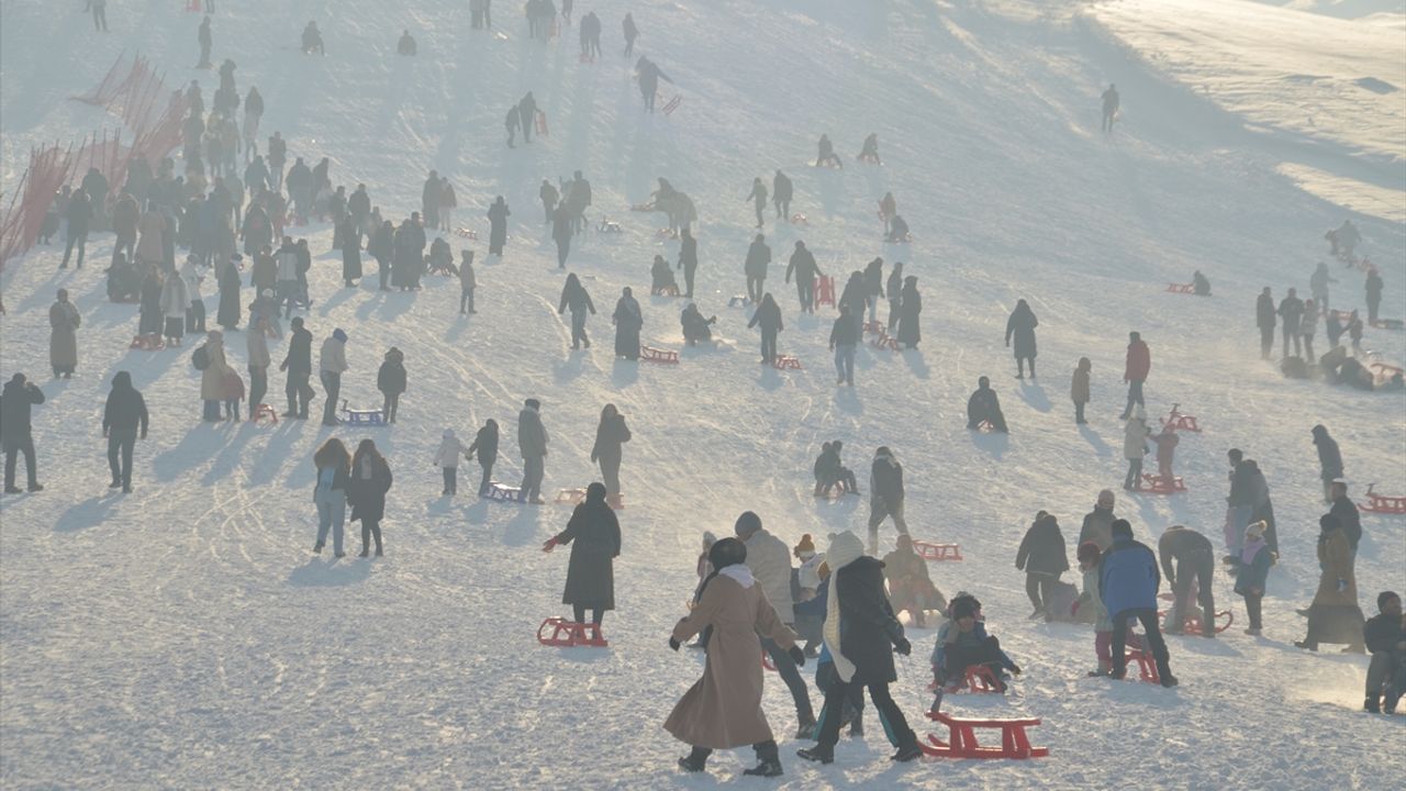 Gençlik ve Spor İl Müdürlüğü bünyesinde hizmet veren kayak merkezine gelenler, kayak takımları ve kızaklarla kaydı. Bazı aileler de çocuklarıyla keyifli zaman geçirdi.