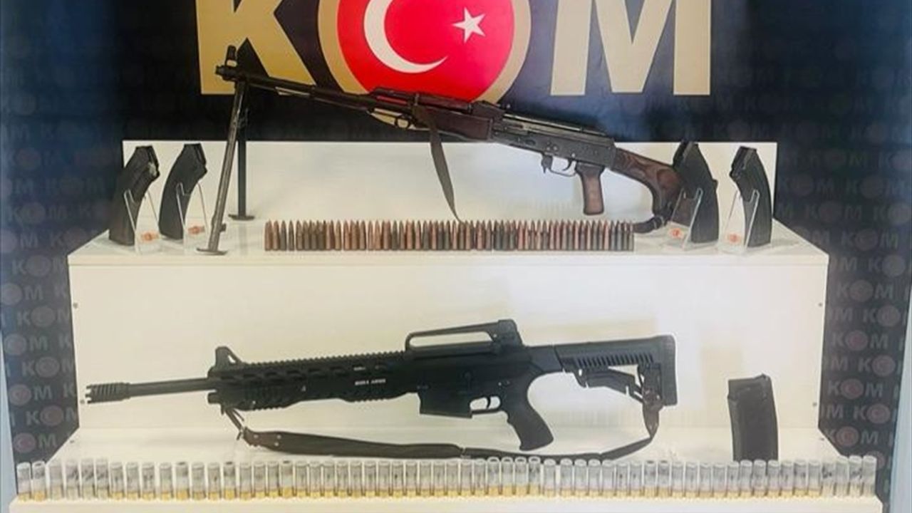 Adreslerde yapılan aramalarda silah, 110 fişek, 4 şarjör, 3 av tüfeği ve 88 av tüfeği kartuşu ele geçirildi.