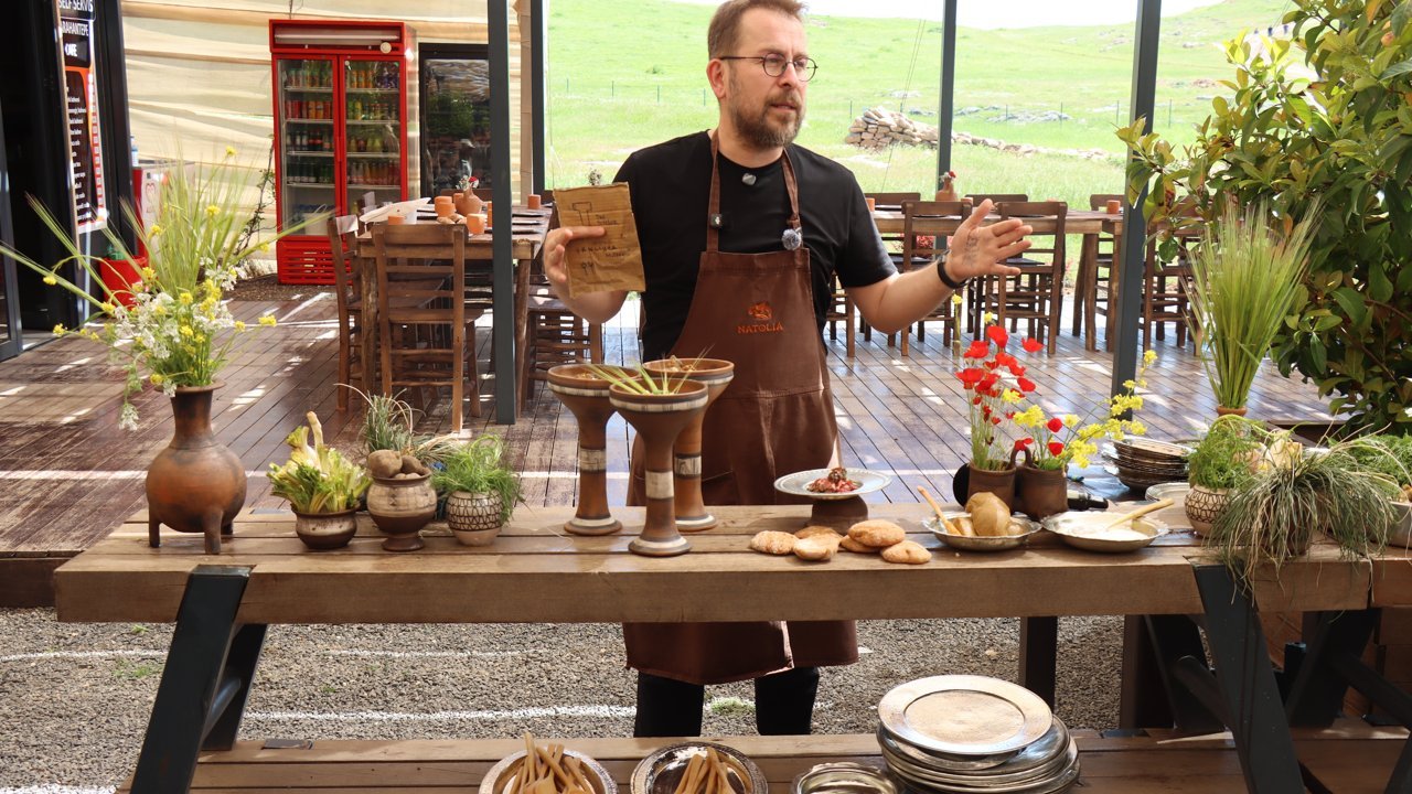 ŞANLIURFA (AA) - YASEMİN KALYONCUOĞLU-CEBRAİL CAYMAZ - Usta şef ve mutfak araştırmacısı Ömür Akkor, Taş Tepeler Projesi kapsamında Karahantepe'de 5 yıldır yaptığı çalışmalar sonrasında, Neolitik Çağ'da Mezopotamya'da yaşayan insanların 12 bin yıl önceki yemek alışkanlıklarını bugüne uyarlayarak menü ortaya çıkardı.