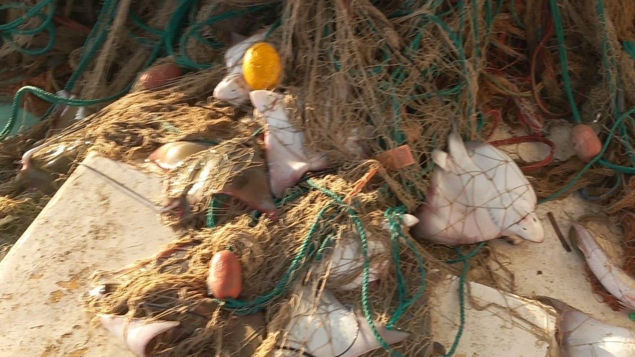 Sürü halinde vatoz yakalamanın şaşkınlığını yaşayan Büyükakın, vatozların hayatta olanlarını denize geri bıraktı.
