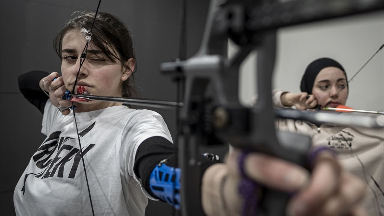 ERZURUM (AA) - YUNUS HOCAOĞLU - Okçuluk sporcuları, Erzurum'daki teknik altyapı ve modern ekipmanlarla donatılan, olimpik standartlara uygun yeni salonda milli takım seçmelerine hazırlanıyor.
