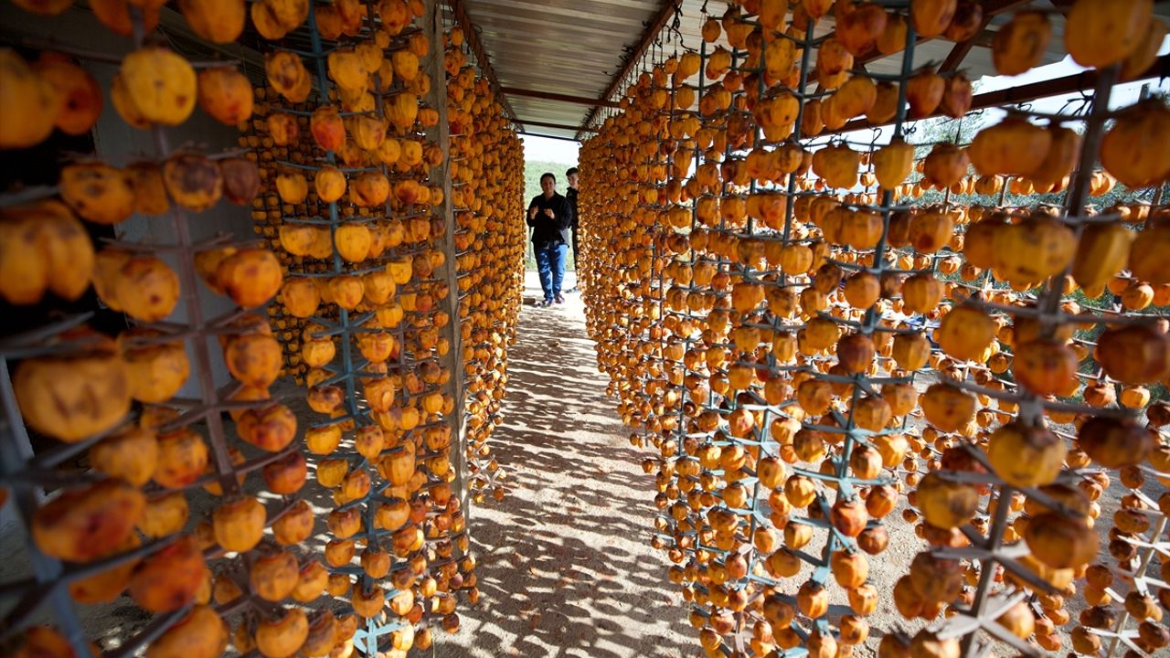 OSMANİYE (AA) - MUZAFFER ÇAĞLIYANER - Osmaniye'nin Sumbas ilçesinde, Nurgül ve Gökhan Güller çifti, 10 dekarlık alanda yetiştirdikleri Trabzon hurmasını kurutarak Türkiye'nin çok sayıda iline gönderiyor.
