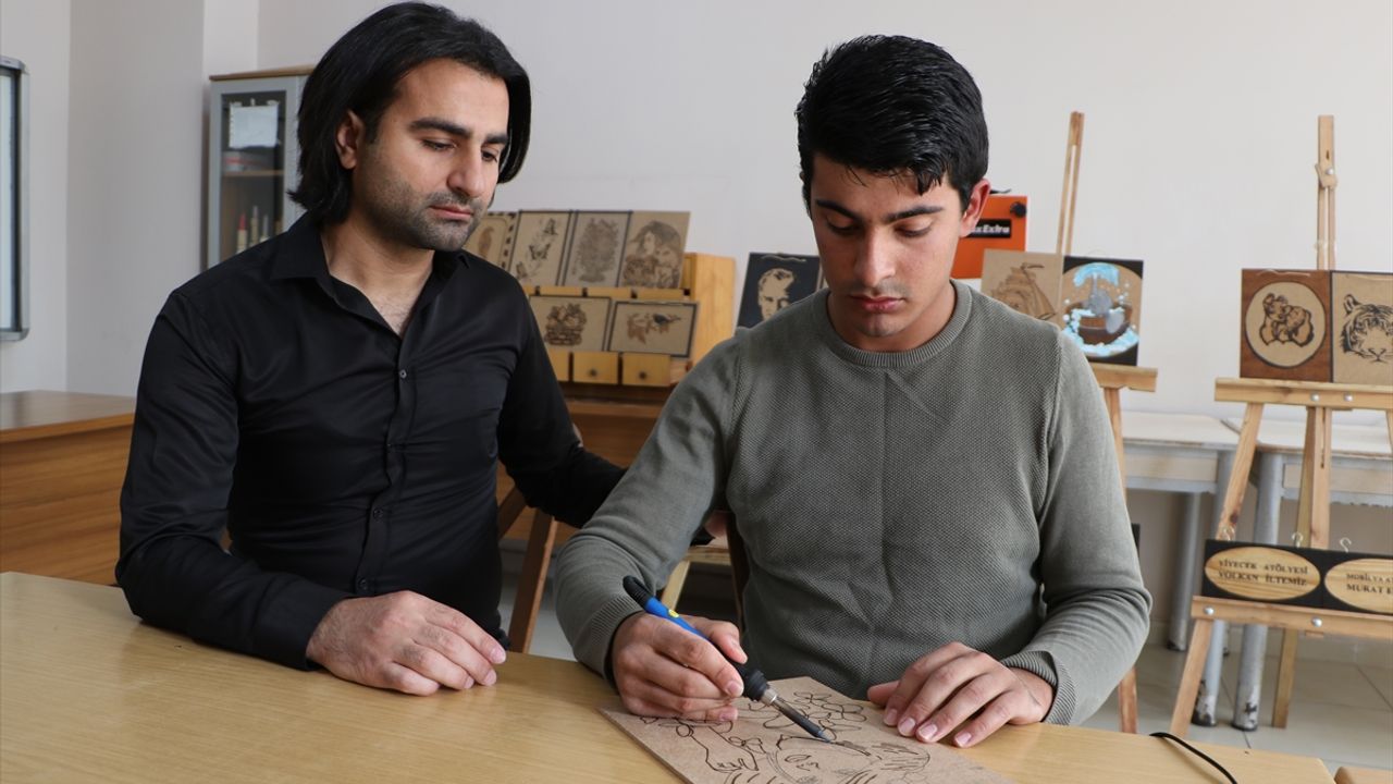 KİLİS (AA) - İBRAHİM ÖZCAN - Kilis'te özel eğitim meslek okulunda resim yeteneği keşfedilen 19 yaşındaki otizmli Erdem Tekyıldırım, ahşap yakma sanatı sayesinde hem üretmenin mutluluğunu yaşıyor hem de sosyal becerilerini geliştiriyor.