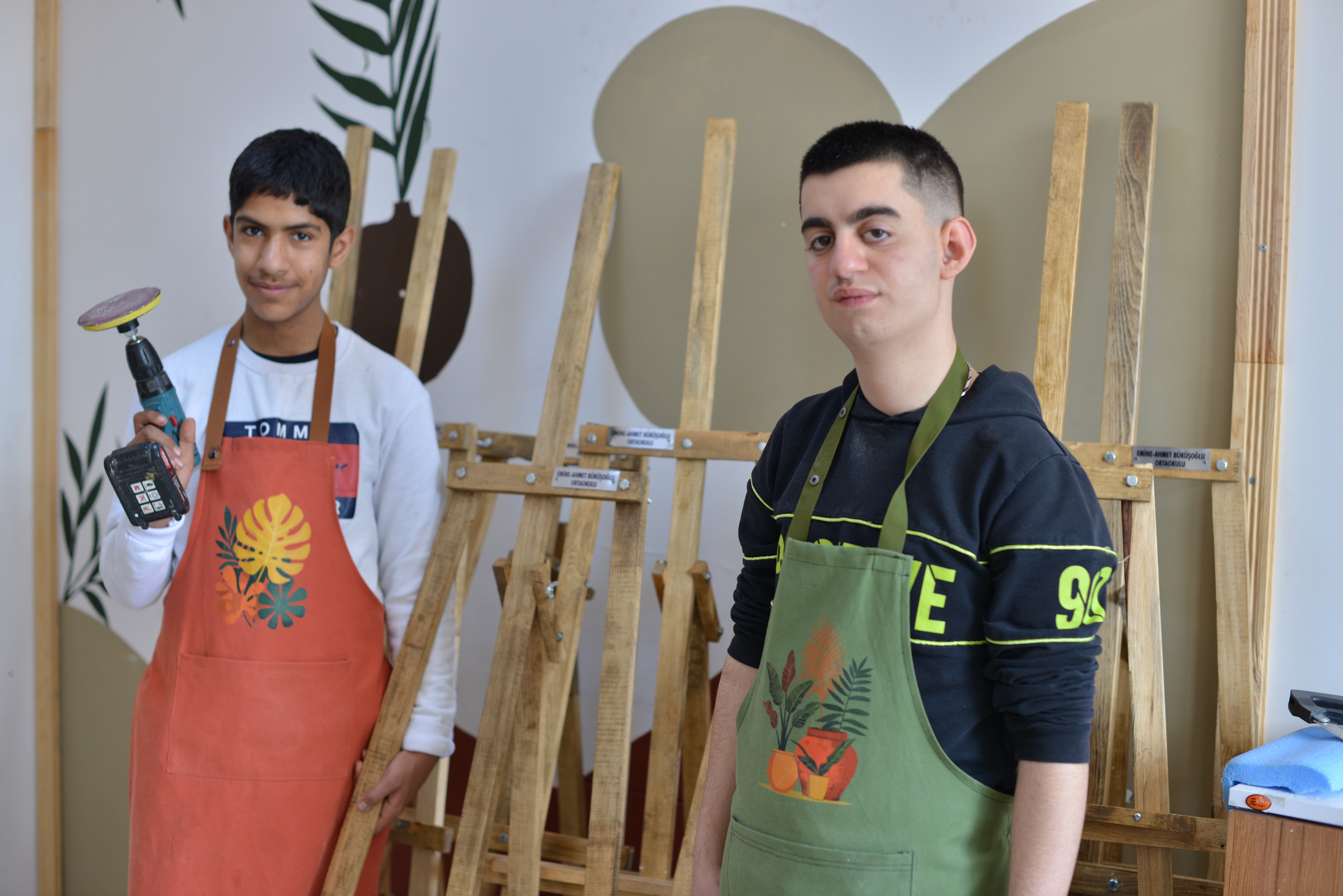 Atölye çalışmalarıyla öğrencilerin hem hayal güçlerini geliştirmesi hem de üretim süreçlerine aktif katılım sağlaması hedefleniyor. Bu kapsamda, öğrenciler resim sergilerinde kullanılmak üzere ahşap sehpa ve stantlar üretiyor.