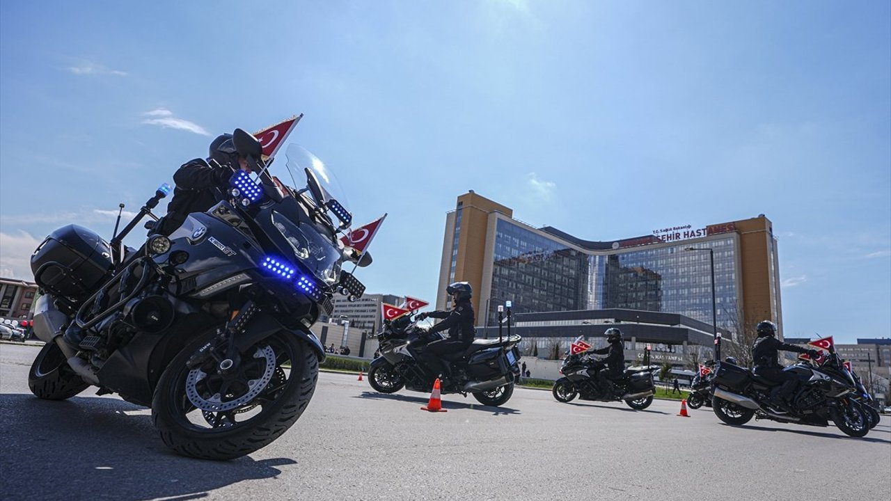 Program, hastane bahçesinde motosikletli koruma polisleri tarafından düzenlenen gösteri ve zırhlı polis araçlarının selamlama kortejiyle başladı.
