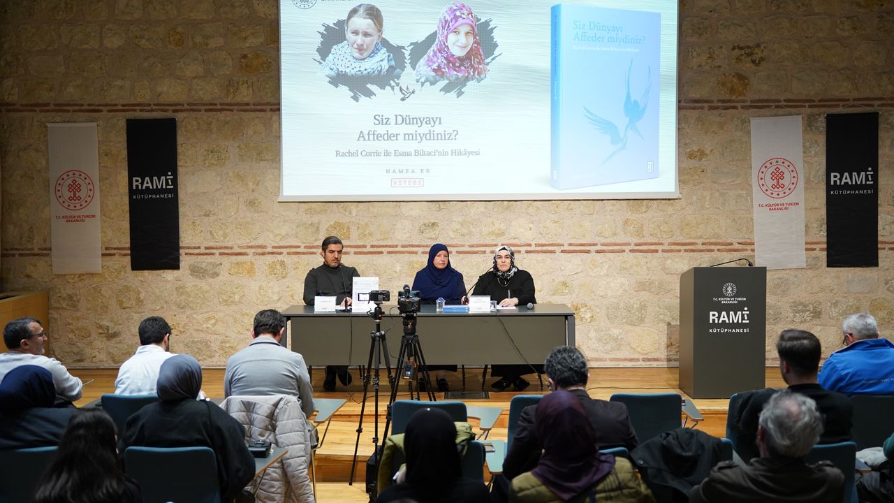 İSTANBUL (AA) - Ketebe Yayınları tarafından yayımlanan 'Siz Dünyayı Affeder miydiniz? - Rachel Corrie ile Esma Biltaci'nin Hikayesi' başlıklı kitap kapsamında, Rami Kütüphanesi ev sahipliğinde sergi ve söyleşi düzenlendi.