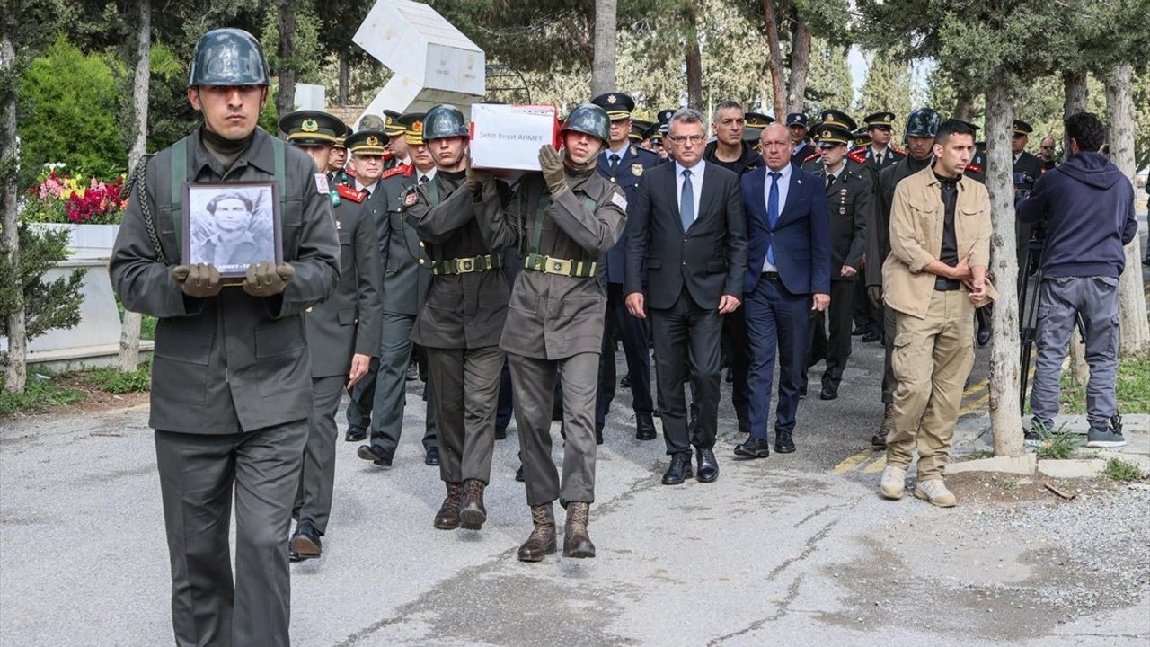 Türk bayrağına sarılı kalıntılar, Lefkoşa Kabristanlığı'nda kılınan cenaze namazının ardından Ortaköy Şehitliği'ne götürüldü.
