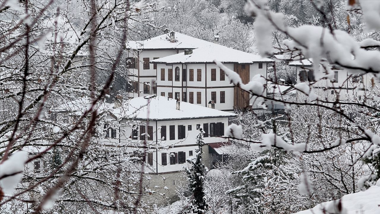 KARABÜK (AA) - UNESCO Dünya Miras Listesi'nde yer alan Karabük'ün Safranbolu ilçesindeki tarihi konaklar kar yağışıyla beyaza büründü.