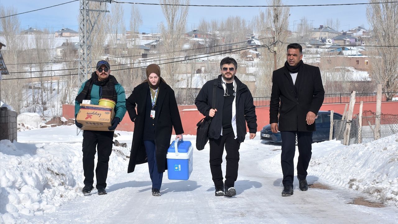 VAN (AA) - ORHAN SAĞLAM - Van'ın Saray ilçesinde görev yapan sağlık çalışanları, kardan dolayı ulaşımın güçlükle sağlandığı karla kaplı yolları aşarak gittikleri kırsal mahallelerde evleri tek tek dolaşarak hastaların kontrollerini yapıyor.