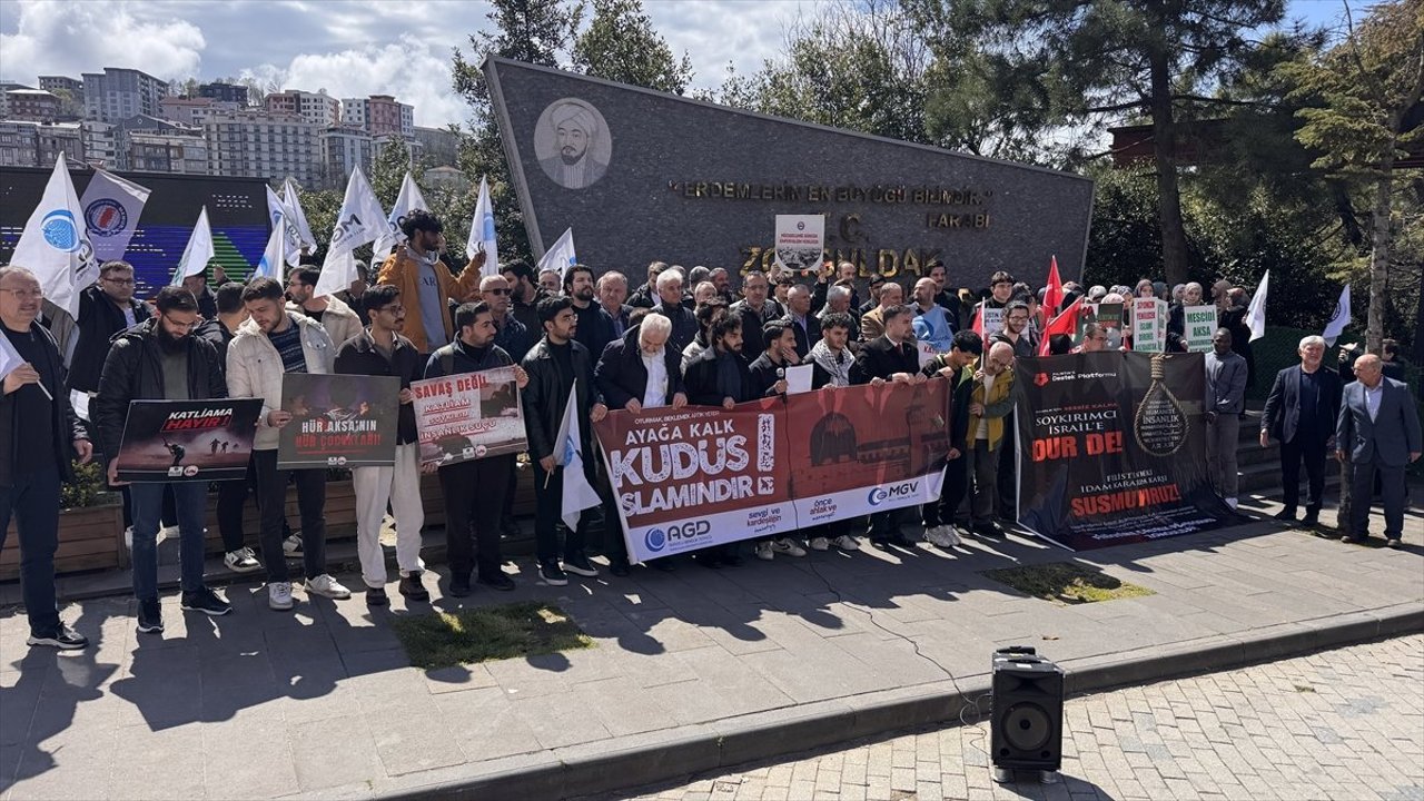 Zonguldak Bülent Ecevit Üniversitesi (BEUN) Farabi Kampüsü önünde cuma namazı sonrası bir araya gelen üniversite öğrencileri ve sivil toplum kuruluşu temsilcileri, ellerinde 'Katil İsrail, Filistin'den defol', 'Filistin'de soykırımı durdur', 'Filistin 80 yıldır işgal altında' yazılı dövizler taşıyarak sloganlar attı.