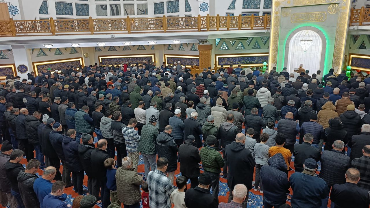 Düzce'nin Akçakoca ilçesinde de Selçuklu mimarisi tarzında inşa edilen Akçakoca Merkez Camisi'ne gelen vatandaşlar, Kur'an-ı Kerim tilavetini ve verilen vaazı dinledi.
