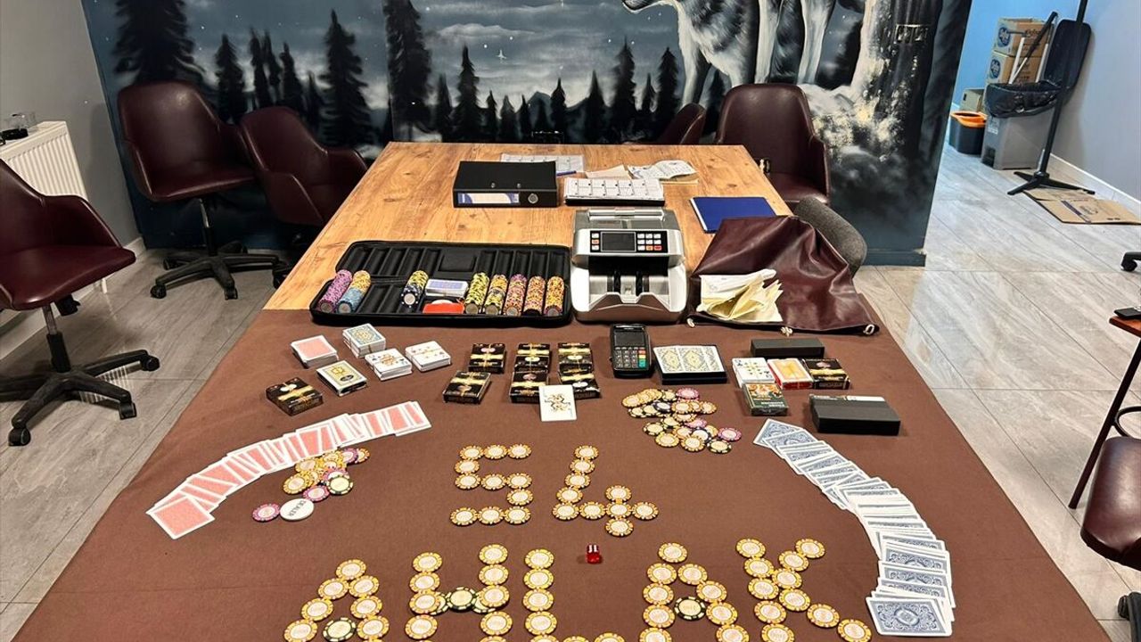 Operasyonda oyun pulları, oyuncu isimlerinin yazıldığı çetele kağıtları, pos cihazı ve para sayma makinesi ele geçirildi.