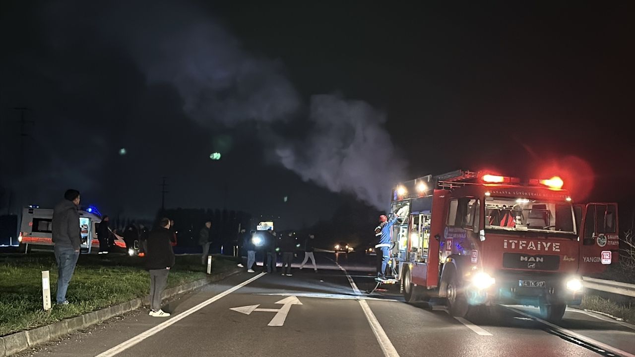 SAKARYA (AA) - Sakarya'nın Akyazı ilçesinde seyir halindeyken alev alan otomobil, kullanılamaz hale geldi.