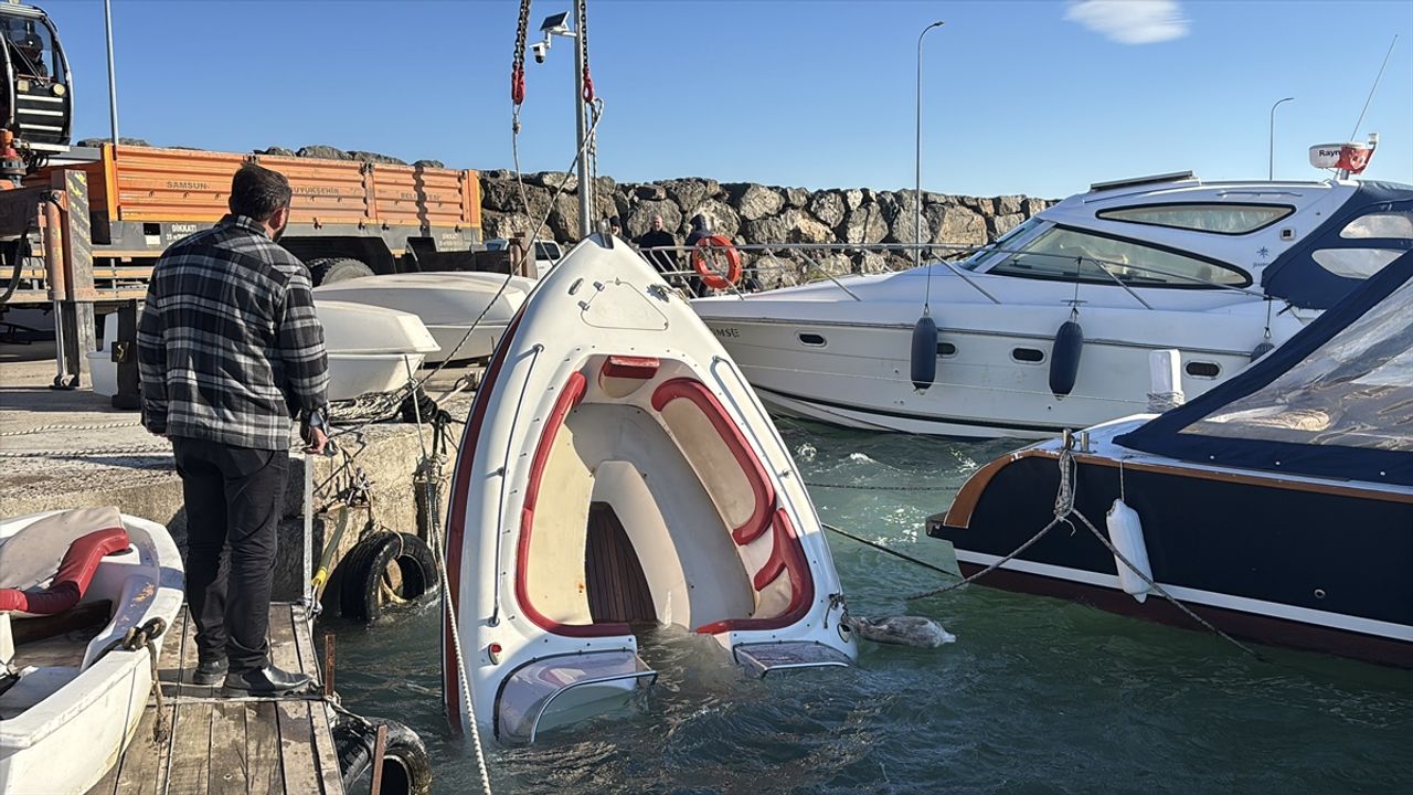 SAMSUN (AA) - Samsun'un Atakum ilçesinde şiddetli rüzgar nedeniyle alabora olan tekne, ekiplerce yüzeye çıkarıldı.