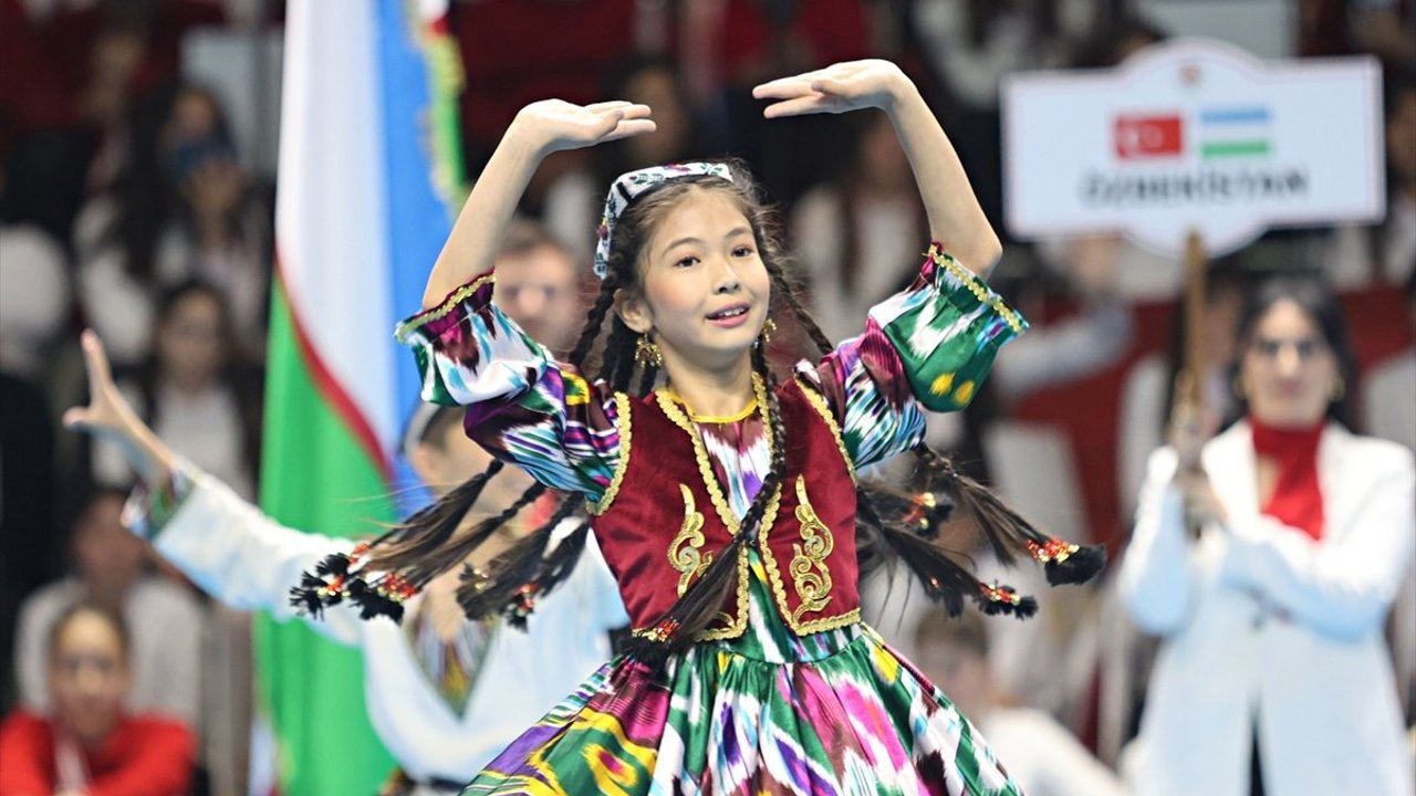 Mustafa Dağıstanlı Spor Salonu'nda düzenlenen programda 9 ülke ve bölgeden gelen 113 çocuk, geleneksel kültürlerine ait dansları sergiledi.