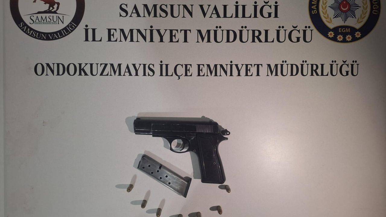 İkamette yapılan aramada ise tabanca, şarjör, 7 fişek ile gümrük kaçağı elektronik sigara ele geçirildi.