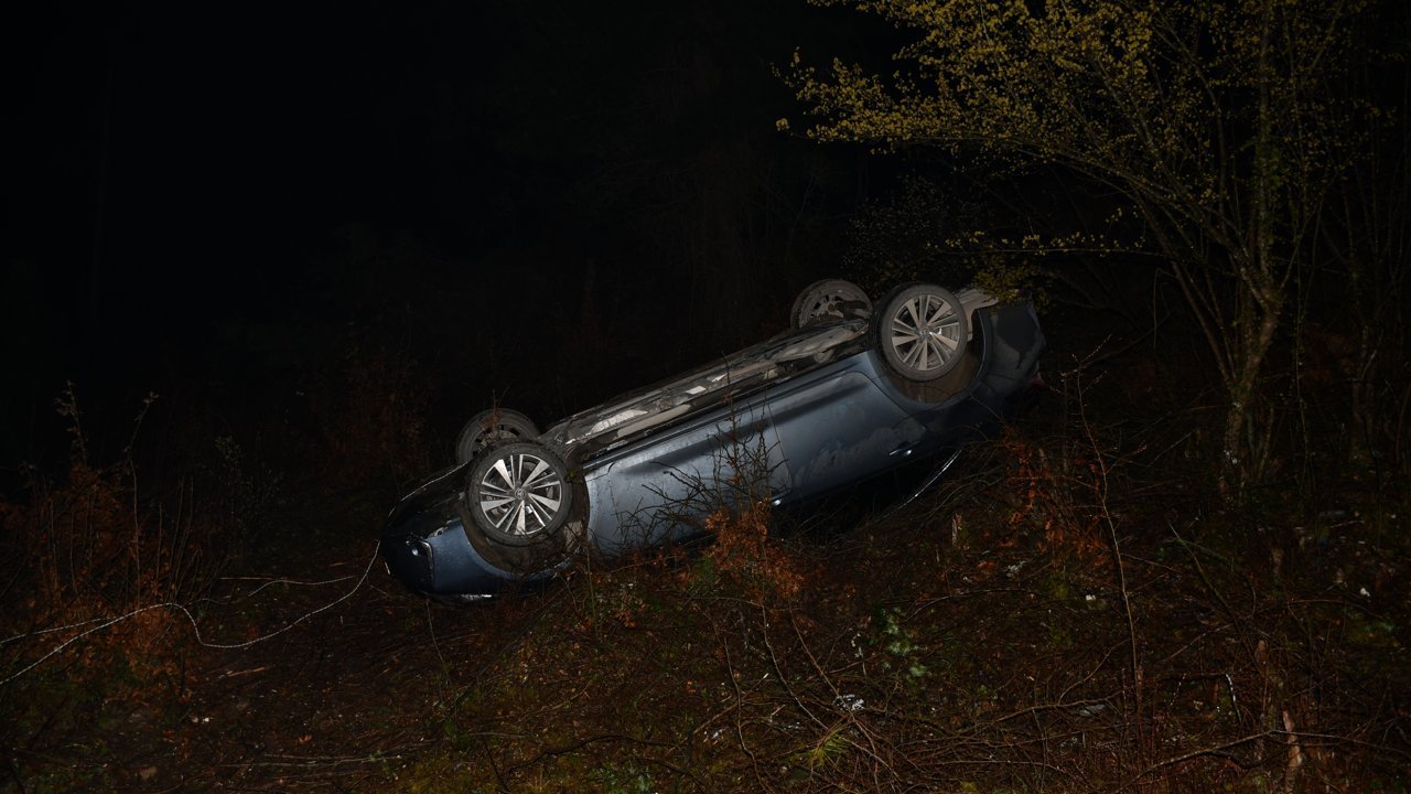 Recep K. (43) idaresindeki 34 HK 0055 plakalı otomobil, düğünden döndükleri sırada Türkmen Mahallesi Şahinkaya Kanyonu yolunda şarampole devrildi.