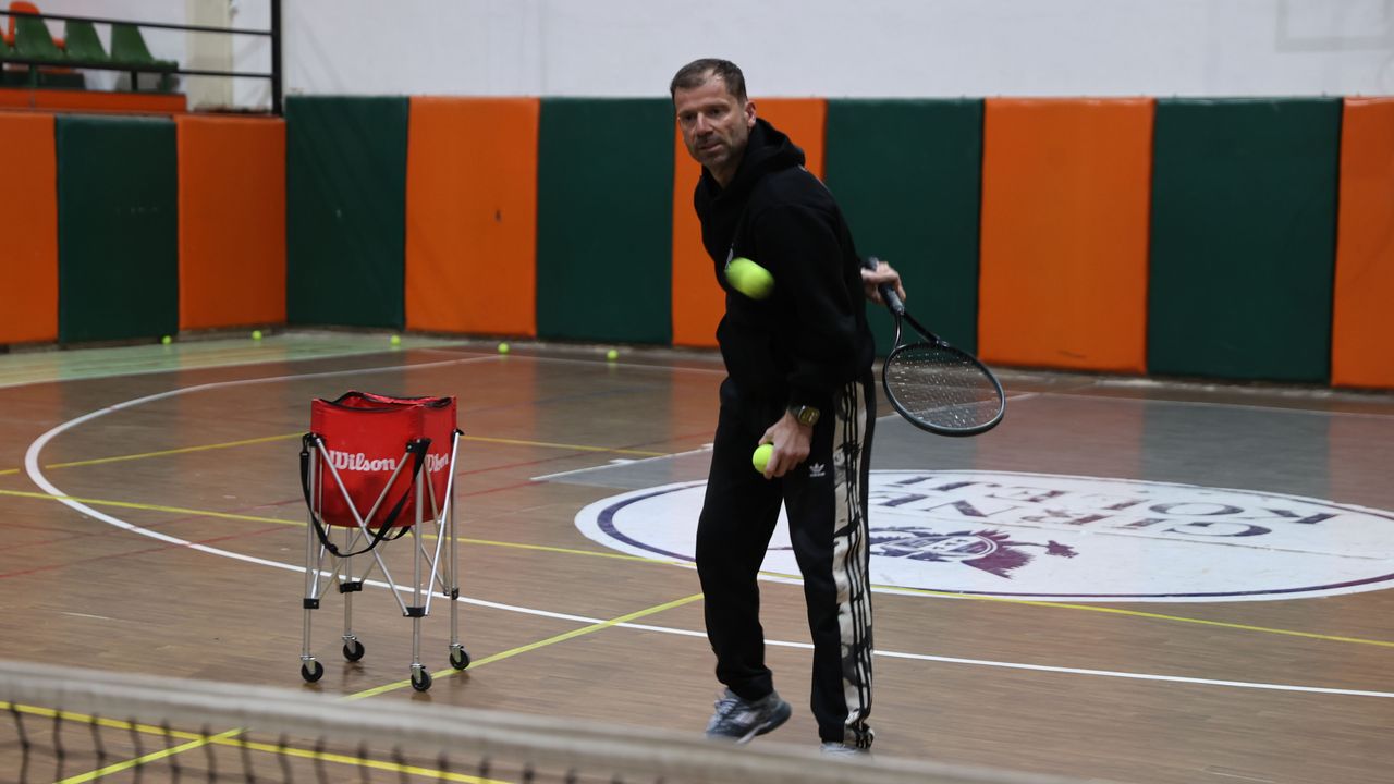 Kort yetersizliğine rağmen yüzlerce gencin hayatına raketle dokunmayı başaran Uyar, spor salonunda öğrencilerini şampiyonalara hazırlıyor.