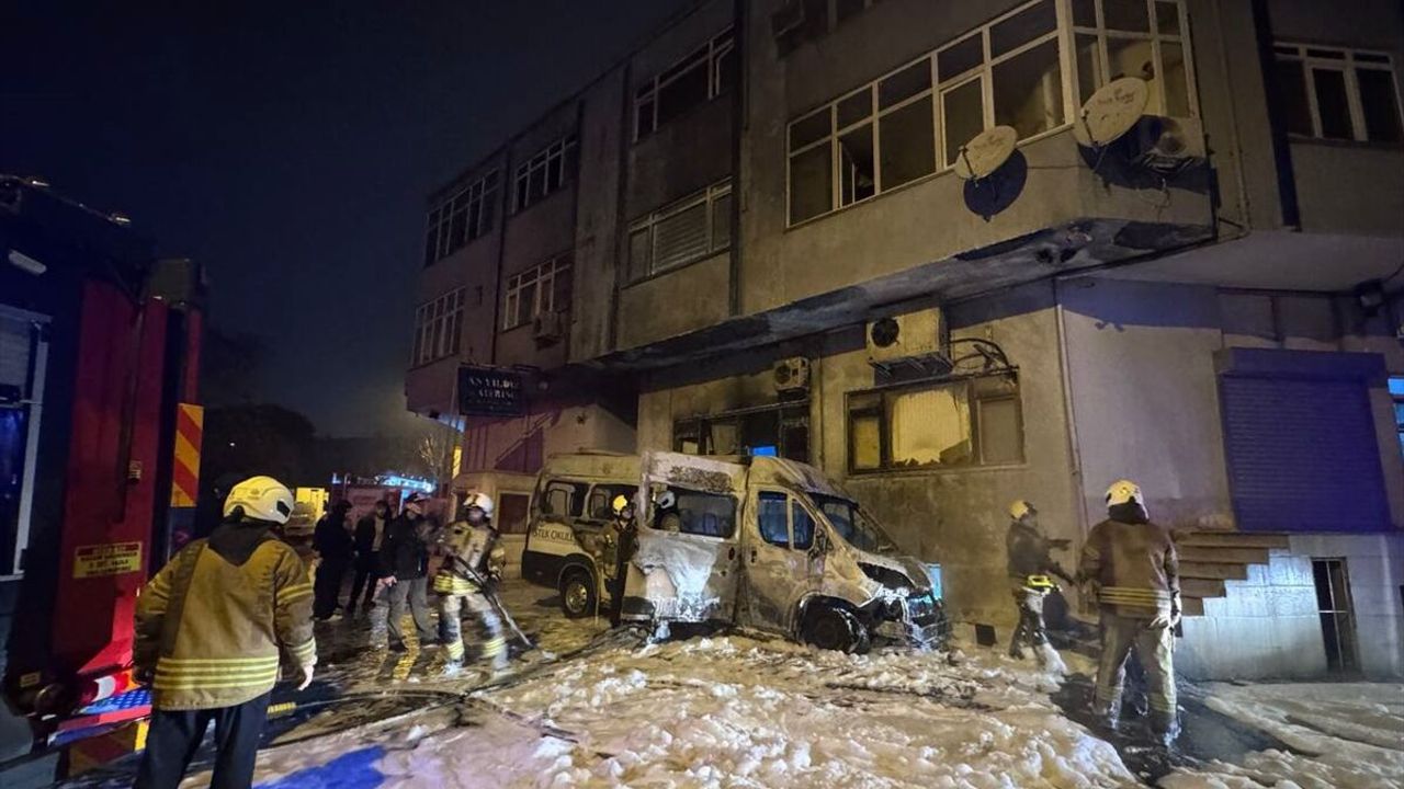 Kısa sürede büyüyen alevler minibüsün bitişiğinde bulunan iki katlı iş yerinin giriş katına da sıçradı. Yangın nedeniyle iş yerindeki personel binayı boşalttı.
