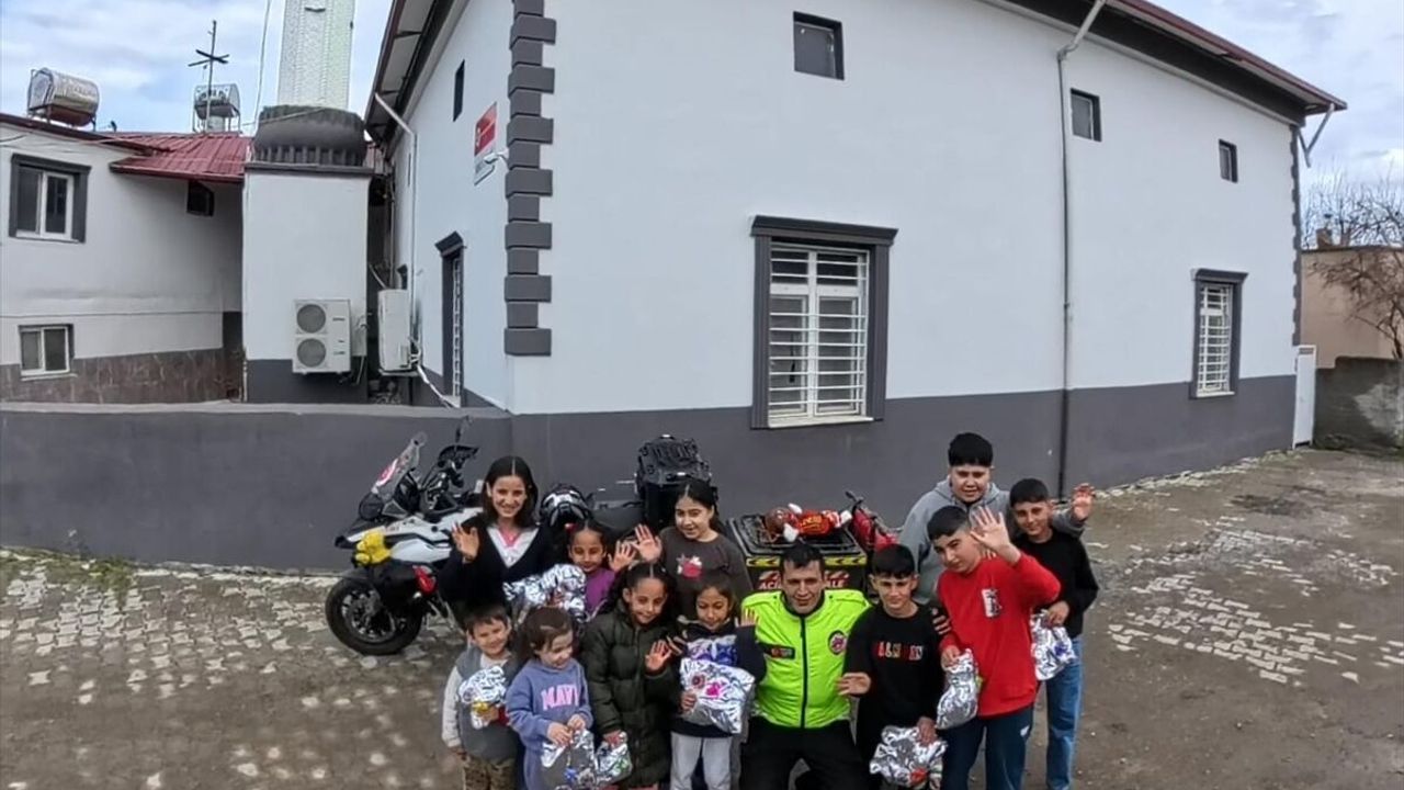 Motosikletinin arkasına taktığı römorka yaklaşık 1000 oyuncak sığdıran Karagöz, biten oyuncakların yerine yenisini satın alarak çocukların sevincine ortak oldu.