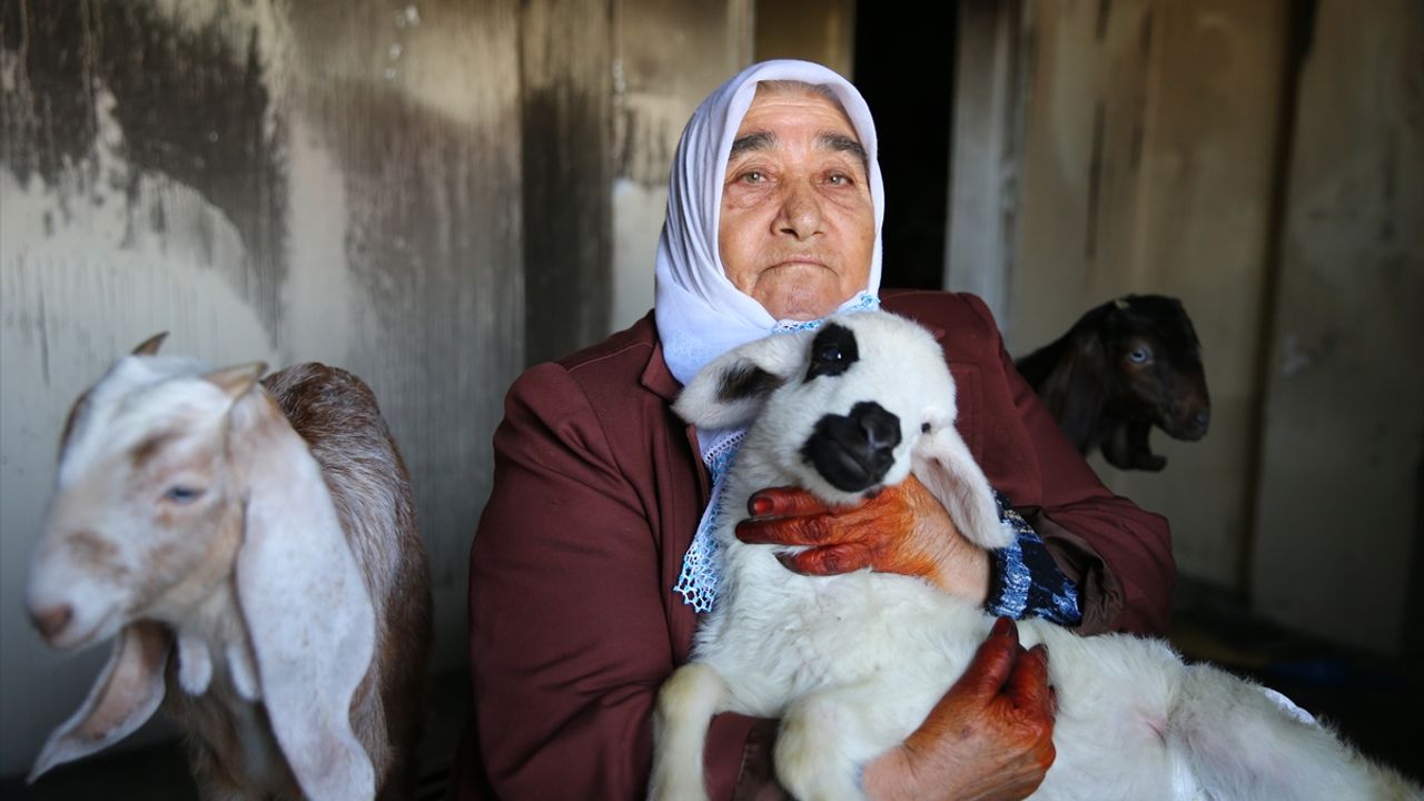 ADANA (AA) - YAKUP SAĞLAM/MEHMET SANCAKZADE - Adana'nın merkez Yüreğir ilçesinde evinde yangın çıkan 75 yaşındaki şehit annesi Fatma Hakan, biberonla beslediği 2 oğlak ve kuzusunun itfaiye ekipleri tarafından kurtarılmasıyla buruk sevinç yaşadı.