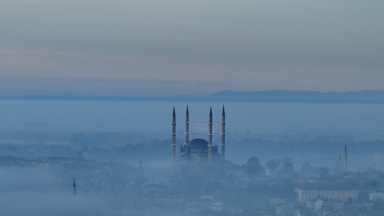 Sis bulutunun içerisinde kalan Selimiye Camisi havadan görüntülendi.