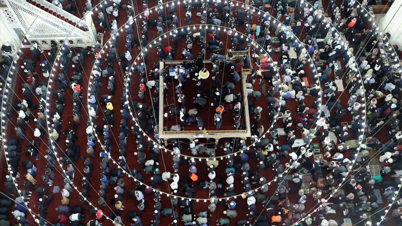 Akşam saatlerinden itibaren camiye gelen vatandaşlar, tarihi mabedin avlusunda ve çevresinde yoğunluk oluşturdu.