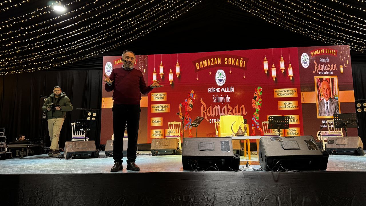 EDİRNE (AA) - Hacettepe Üniversitesi Öğretim Üyesi Prof. Dr. Tufan Gündüz ve Türk tasavvuf müziğinin usta ismi Sami Savni Özer, Edirne Valiliğince Selimiye Meydanı'nda düzenlenen 'Ramazan Sokağı' etkinlikleri kapsamında vatandaşlarla buluştu.