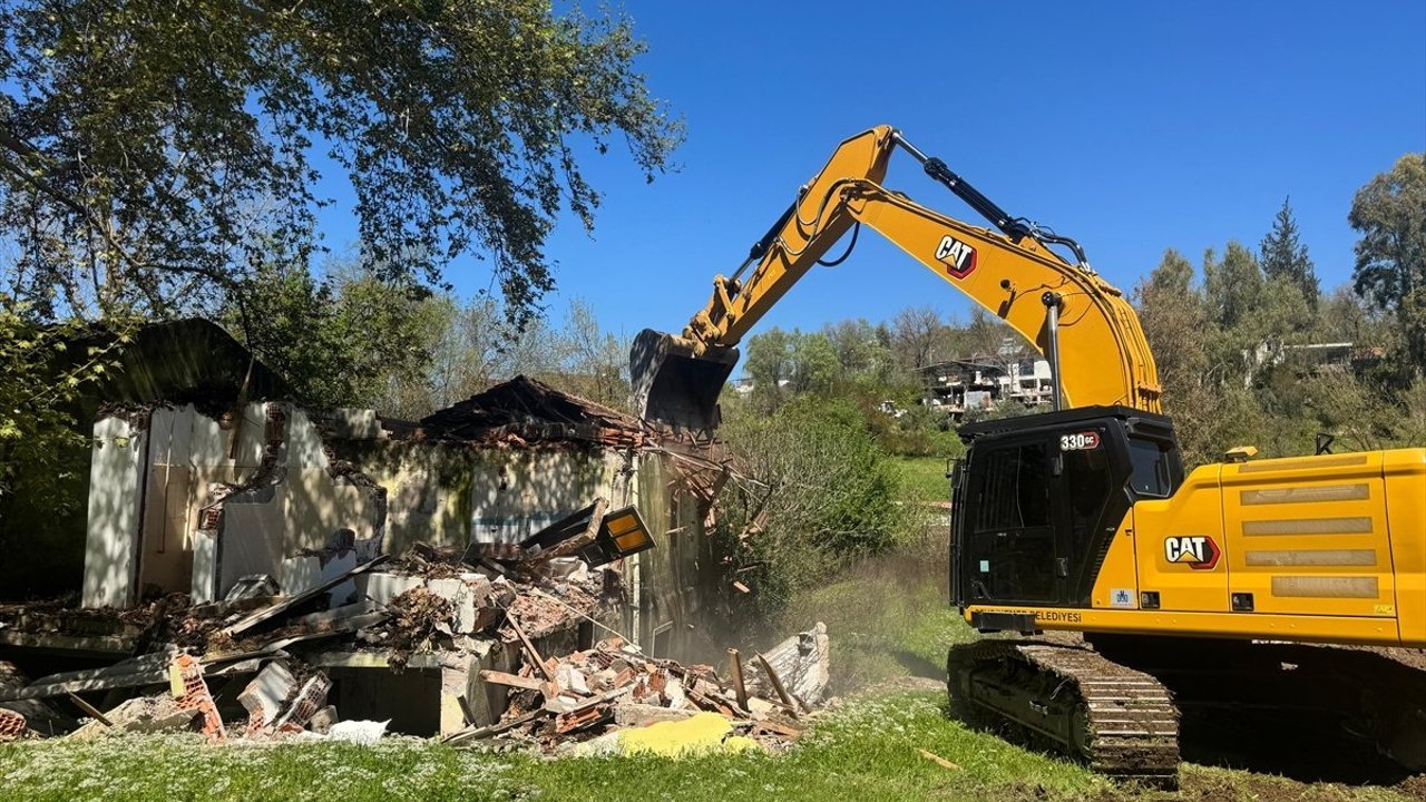 MUĞLA (AA) - Muğla'nın Seydikemer ilçesinde, yaklaşık 10 yıldır atıl durumda bulunan tarihi Girmeler Kaplıcası'nın yeniden turizme kazandırılması için hazırlanan proje kapsamında binaların yıkımına başlandı.