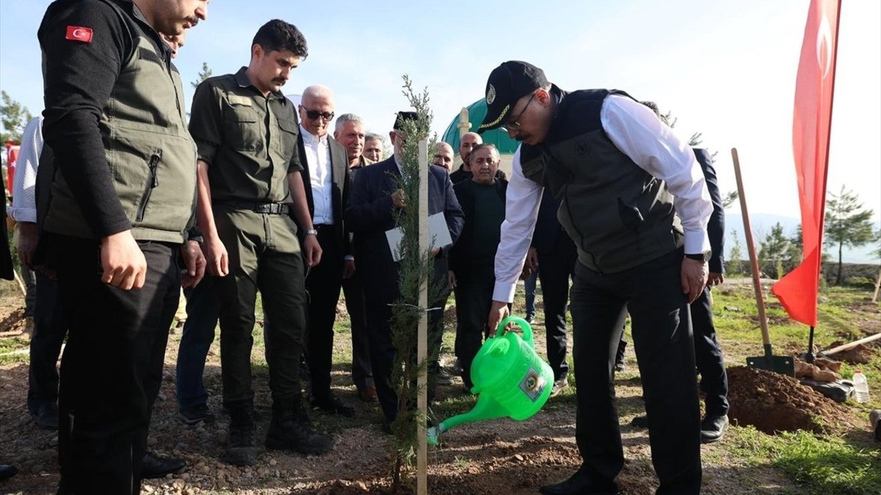 Kızılkaya, jandarma personeli ve köy sakinleriyle birlikte fidan dikti.