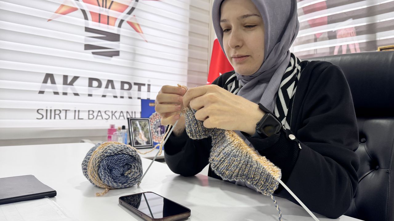 SİİRT (AA) - Siirt'te AK Parti'li bir grup kadın, köy ziyaretlerinde karşılaştıkları çocuklara ulaştırmak için atkı, bere ve eldiven örüyor.