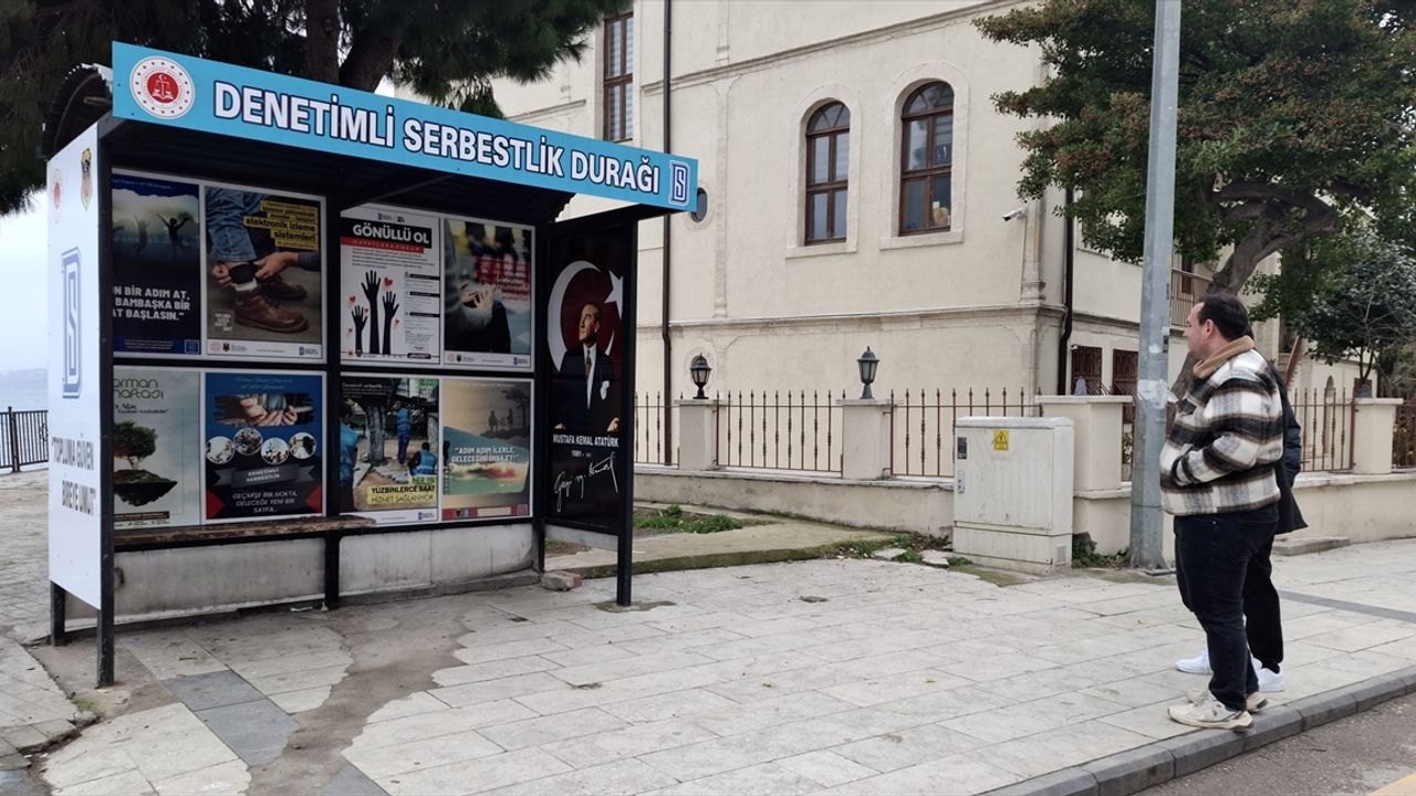 Uygulama kapsamında durak, denetimli serbestlik hizmetlerinin anlatıldığı tanıtım afişleriyle giydirildi.
