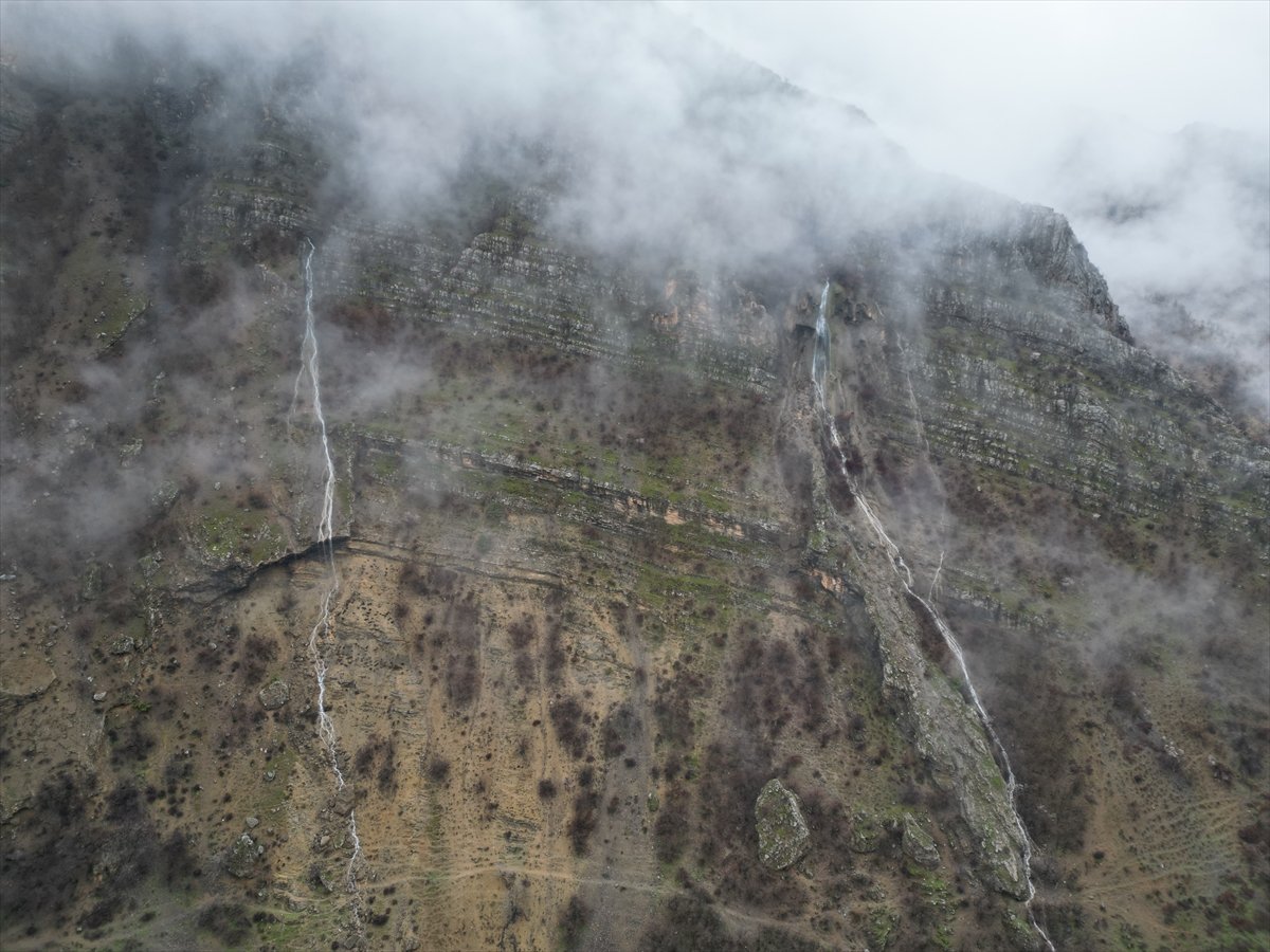 ŞIRNAK (AA) - Şırnak'ın Uludere ilçesinde kar suları ve yağmurla canlanan şelaleler dronla görüntülendi.