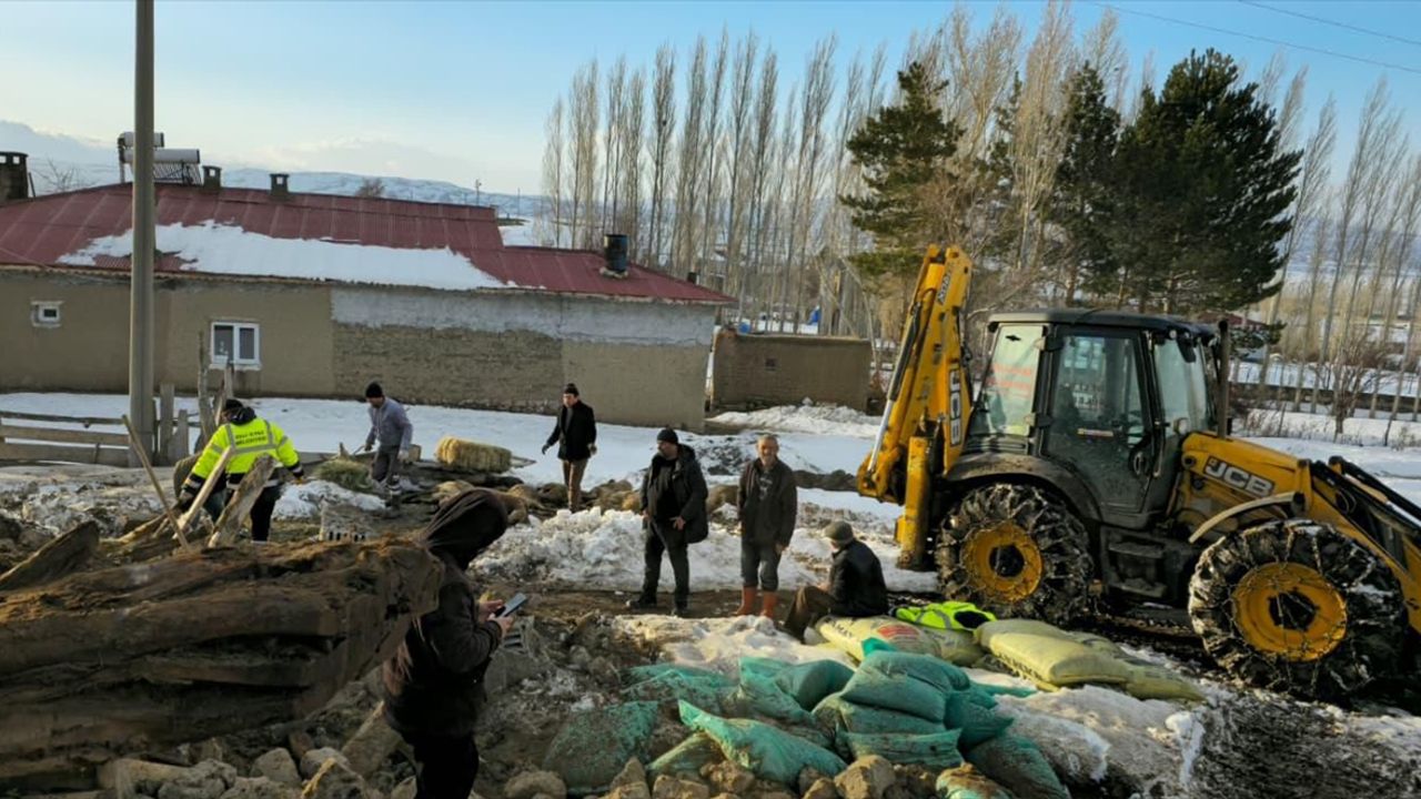 Telef olan 40 koyun, iş makineleri ve vatandaşların yardımıyla enkazdan çıkarıldı.