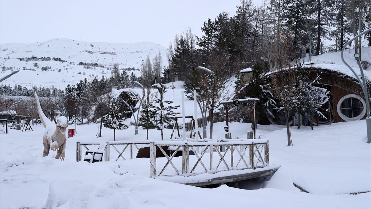 Paşabahçe Mesire Alanı'ndaki 'Hobbit Evler' diye anılan yamaç evlerinin bulunduğu alanda ise kar yağışının ardından güzel manzaralar oluştu, mesire alanında bulunan şelale dondu.