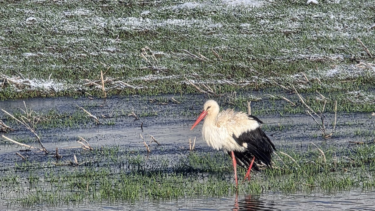 Öte yandan bölgeye gelen leylek, turna ve balıkçıl gibi göçmen kuşların karla kaplı alandaki su birikintisinde yiyecek araması doğaseverler tarafından ilgiyle izlendi.