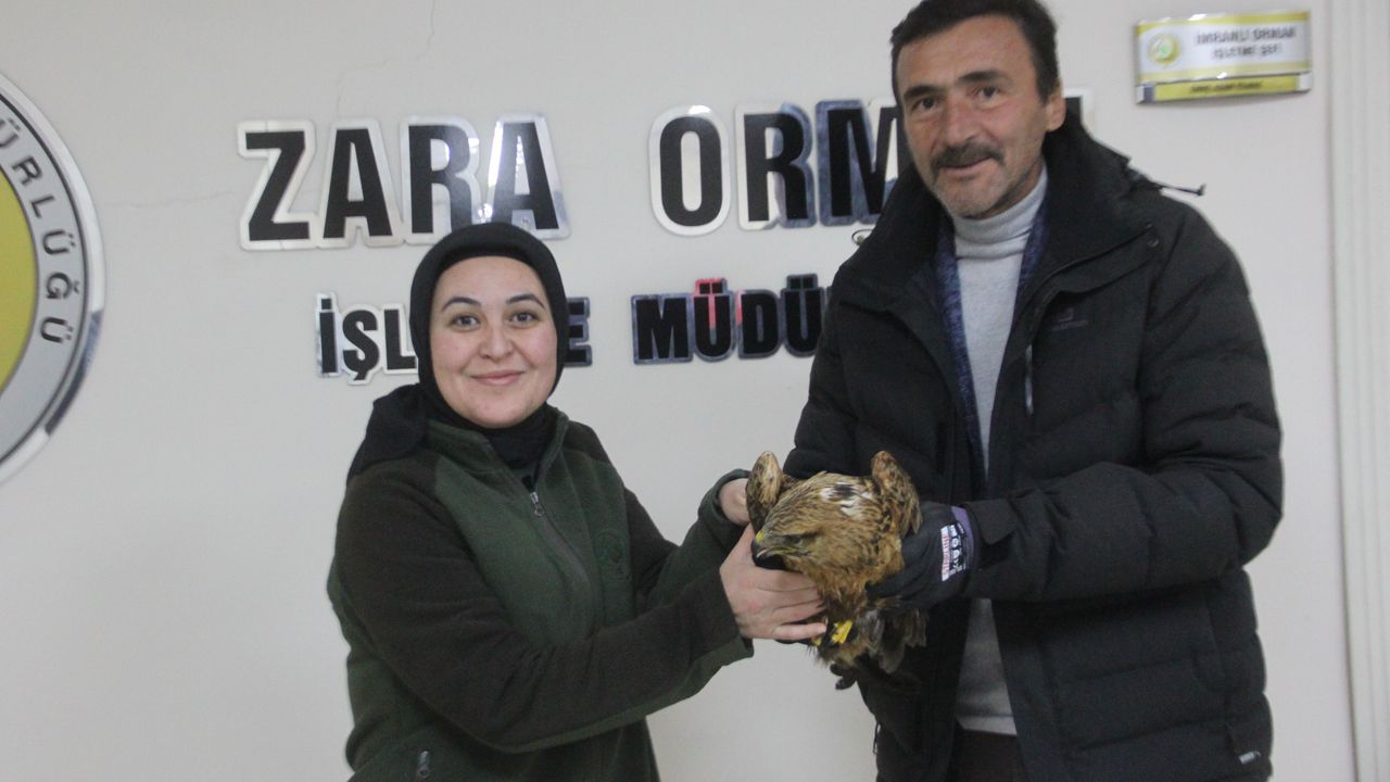 Mutlu, daha sonra kızıl şahini Zara Orman İşletme Müdürlüğü yetkililerine teslim etti.